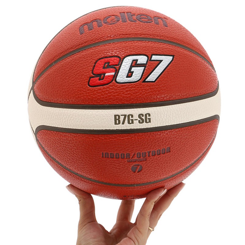Баскетбольний м'яч Molten B7G-SG Баскетбольний м'яч Molten зі штучної шкіри для гри у залі. Модель призначена для підготовки до змагань на професійному рівні. Розмір: 7 КОНТРОЛЬ М'ЯЧУ Нова текстура поверхні забезпечує ідеальне захоплення навіть вологими долонями. М'яч має революційну поверхню з тисненням та плоскі канали. Таким чином площа поверхні та її однорідність робить більш надійними захоплення та фіксацію м'яча в руках незалежно від точки контакту, а зменшена висота панелей ще й робить більш стабільним обертання м'яча для більш точних кидків та передач. Особливості м'яча Molten B7G-SG: Поліуретан 12 панельний дизайн Бутилова камера Прокладка камери з нейлону У нас ви придбаєте лише оригінальні м'ячі. Ми цінуємо свою репутацію!