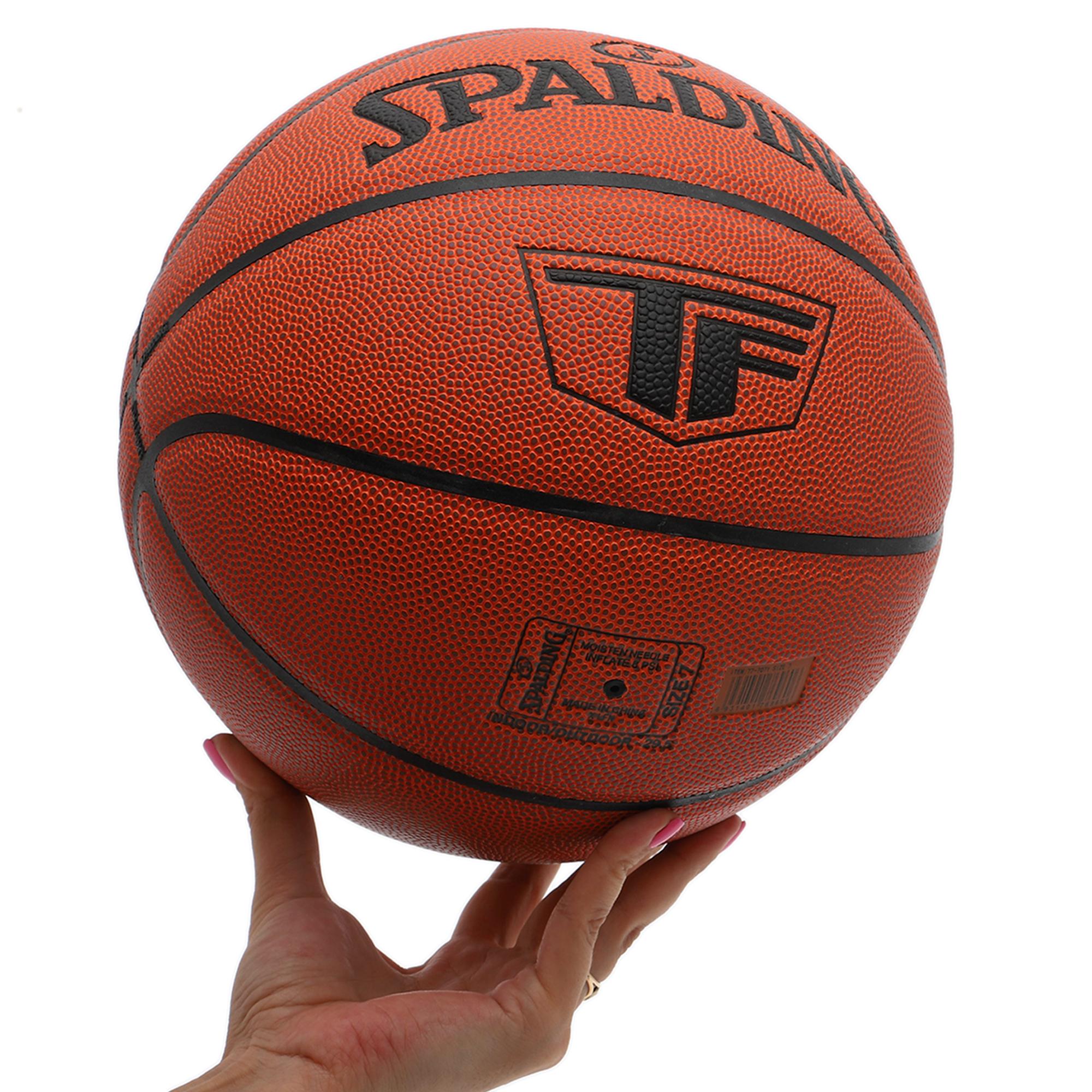 Баскетбольний м'яч PU SPALDING TF Вид: баскетбольний м'яч. Матеріал шини: поліуретан. Матеріал камери: бутіл армований ниткою. Розмір: 7. Колір: коричневий. Призначення: для занять баскетболом у залі та на вулиці. М'яч SPALDING – спортивний м'яч преміальної якості. М'яч виготовлений із міцного синтетичного матеріалу – поліуретану. Він за властивостями максимально нагадує натуральну шкіру. Шорстка поверхня сприяє гарному зчепленню м'яча з руками гравців. М'яч можна використовувати для гри на вуличних майданчиках або у спортивному залі. На будь-якому типі покриття м'яч зберігатиме свої ігрові характеристики. Камера м'яча виготовлена із бутила. Додаткову міцність матеріалу надає армування ниткою. М'яч довго не деформується навіть за активної експлуатації. Він добре тримає тиск. М'яч №7 призначений для гравців віком від 14 років. Його можуть використати дорослі чоловічі команди. Переваги баскетбольного м'яча: Можна використовувати на вулиці та в приміщенні. Чи не ковзає в руках. Армована ниткою камери. Призначений для дорослих гравців. У нас ви придбаєте лише оригінальні м'ячі. Ми цінуємо свою репутацію! Про бренд Spalding: Американська компанія, всесвітньо відомий виробник спортивних товарів, заснована Альбертом Спалдінгом в Чикаго, штат Іллінойс. Компанія спеціалізується у виробництві м'ячів та інвентарю для багатьох видів спорту: баскетбол, бейсбол, футбол, софтбол, волейбол, американський футбол, лижі та гольф. Spalding - офіційний баскетбольний постачальник Національної баскетбольної асоціації та Жіночої національної баскетбольної асоціації (WNBA), офіційний постачальник баскетбольних щитів для НБА та Національної університетської атлетичної асоціації (NCAA), офіційний волейбольний постачальник туру King of the Beach, офіційний волейбольний постачальник туру King of the Beach MISL) та постачальник для Американської футбольної ліги (AFL) та Pop Warner. М'яч Spalding – правильний вибір!