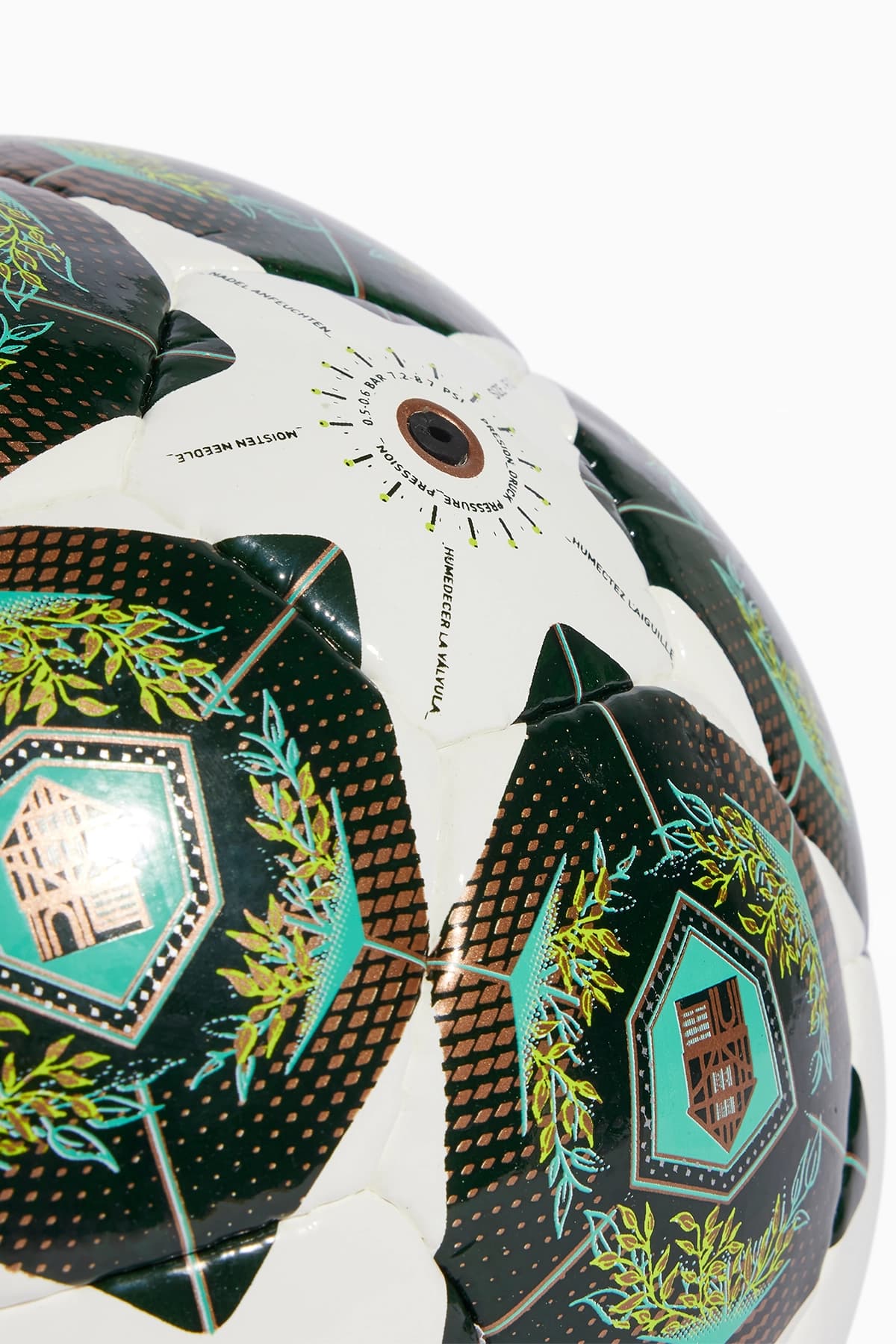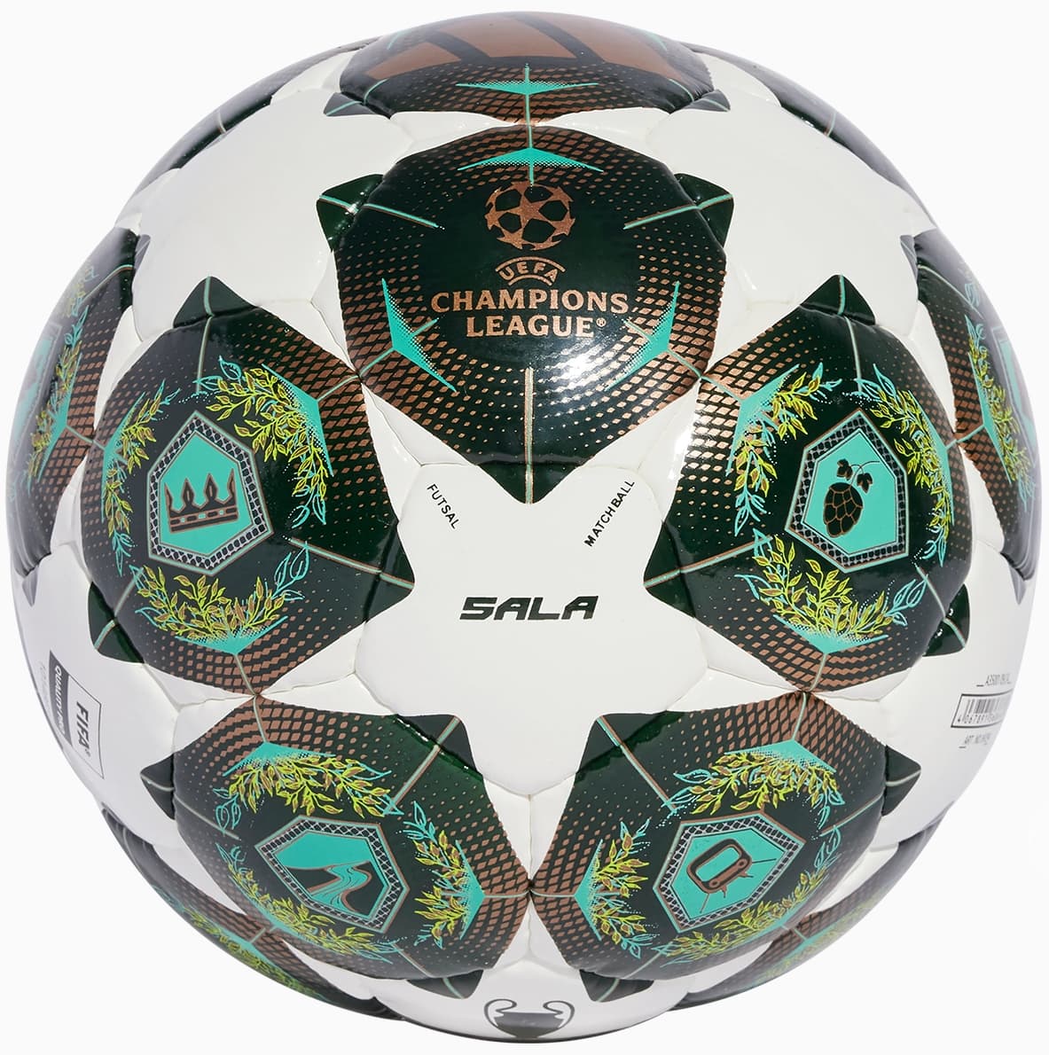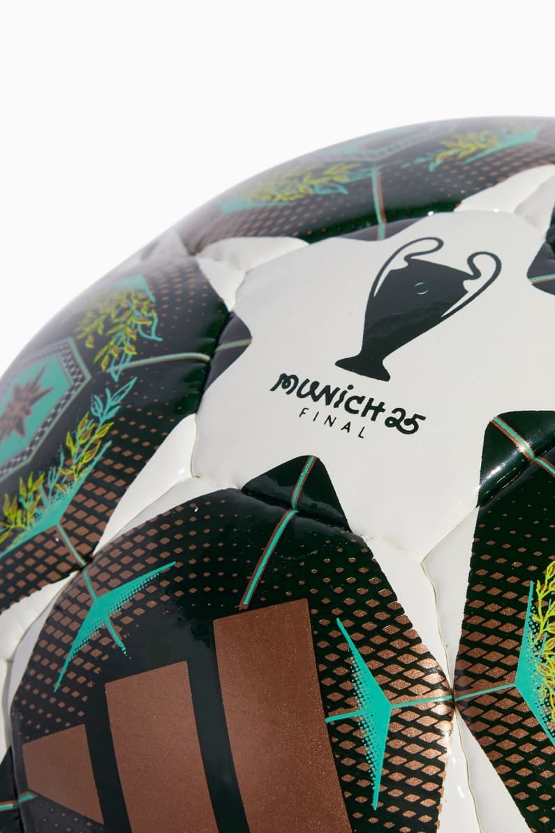 Этот мяч специально разработан для использования в отборочных играх Лиги Чемпионов в 2025 году. Эта модель – футзальный мяч в линейке после Adidas FINALE OMB, официального мяча финала Лиги Чемпионов. Мяч Adidas имеет необычный зеленый цвет и выполнен в основном с золотыми узорами и логотипах на звездах.