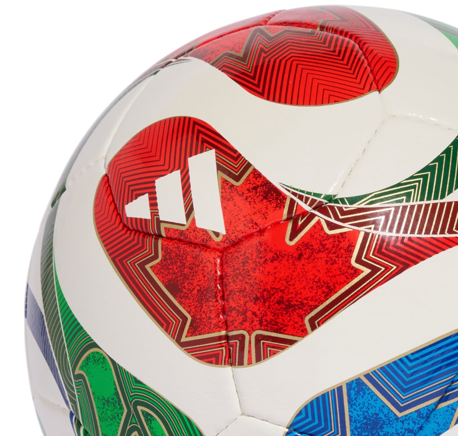 Визуальный вид мяча подчеркивает гармонию и разнообразие североамериканского континента. Базовый цвет – белый – придает мячу яркости и чистоты, а динамические красные, зеленые и синие узоры отсылают к флагам США, Канады и Мексики.