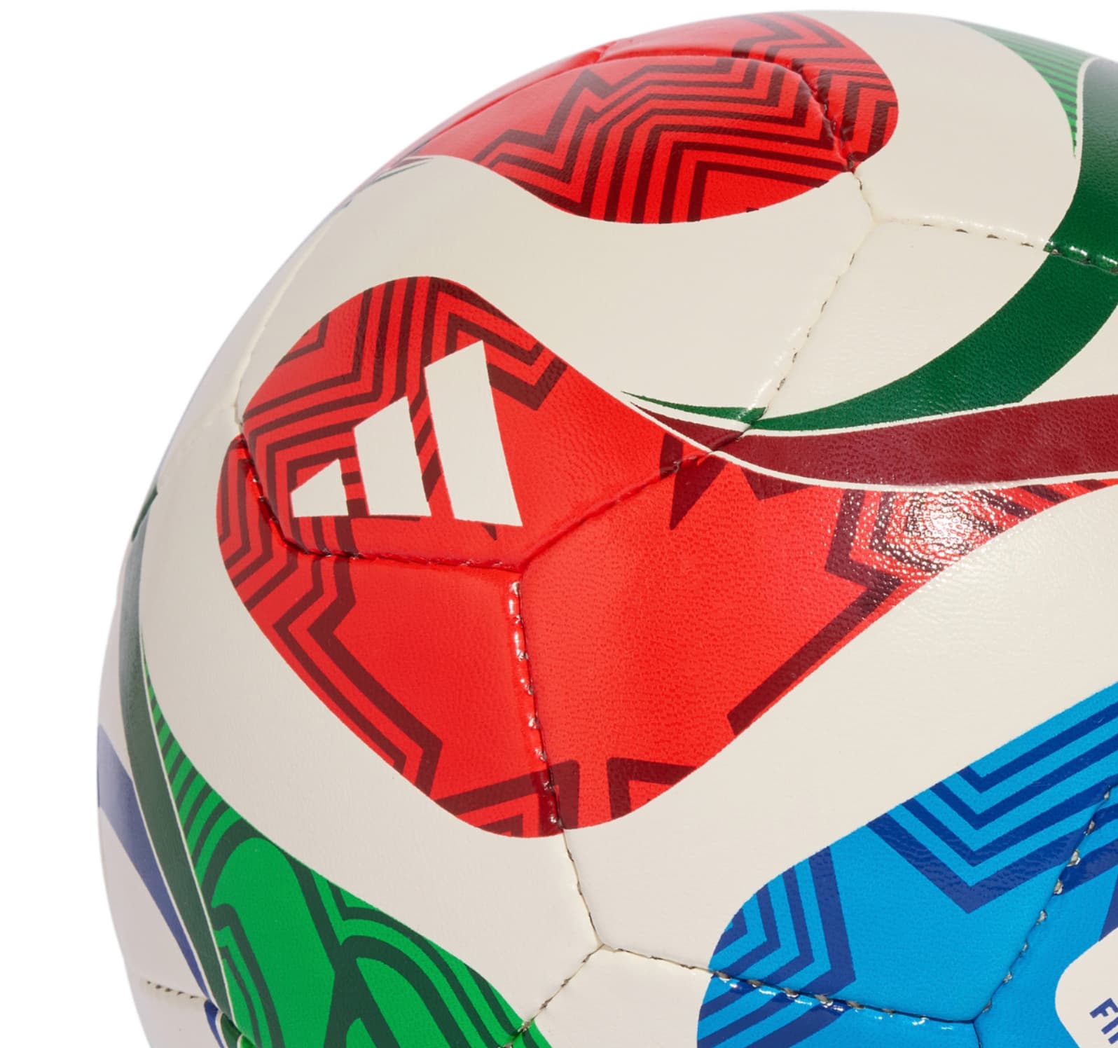 Визуальный вид мяча подчеркивает гармонию и разнообразие североамериканского континента. Базовый цвет – белый – придает мячу яркости и чистоты, а динамические красные, зеленые и синие узоры отсылают к флагам США, Канады и Мексики.