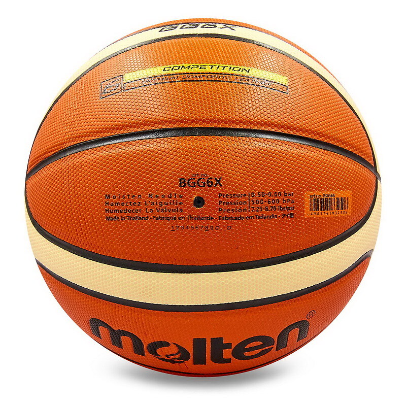 Баскетбольний м'яч Molten BGG6 – офіційний баскетбольний м'яч Олімпійських ігор. Розмір: 6 Сезон: 2015-2019 роки. М'яч Molten GG6x – баскетбольний м'яч преміальної якості. Його можна використовувати під час тренувань професійних чоловічих команд, а також для змагань серед них. М'яч зроблений з використанням високоякісних матеріалів та технологій. MOLTEN BGG6X відмінно витримує контакт із покриттям залу. Вона довговічна та міцна. Як підкладковий шар використовуються бутил і піна. Застосування таких матеріалів дозволяє зробити м'яч досить м'яким і надати йому ідеальної сферичної форми. Камера м'яча також виготовлена із бутила і може довго утримувати тиск повітря. Наявність підкладки компенсує жорсткість пляшкової камери. Призначення: Баскетбольний м'яч відповідає вимогам міжнародної Федерації баскетболу. Його вага та розмір, а також висота відскоку та інші параметри відповідають суворим правилам гри. Це дає змогу використовувати м'яч для проведення турнірів найвищого рівня. Тренування з таким м'ячем дозволить баскетболістам по-новому розкрити свої можливості та покращити техніку гри. Особливості м'яча Molten GG6: Композитна шкіра 12 панельний дизайн Технологія Molten Flat-Pebble Surface (збільшує площу контакту з поверхнею м'яча) Технологія Molten Full-Flat Seam (немає заглиблень у місцях з'єднання панелей) Бутилова камера Прокладка камери з нейлону FIBA Approve (Схвалений Міжнародною федерацією баскетболу) У нас ви придбаєте лише оригінальні м'ячі. Ми цінуємо свою репутацію! Про бренд Molten Molten – японський бренд із виробництва м'ячів. Основний напрямок компанії – баскетбольні, волейбольні та футбольні м'ячі, а також аксесуари для ігрових видів спорту, як насоси. "Molten" перекладається як «розплавлений», що чудово передає їхню монолітну форму та ідеальну округлість. Компанія була заснована в 1958 році і її головний офіс знаходиться в багато відомому місті Хіросіма (Японія). А виробничі потужності розташовані у багатьох країнах Азії, таких як Індія, Пакистан, В'єтнам, Таїланд та Китай.