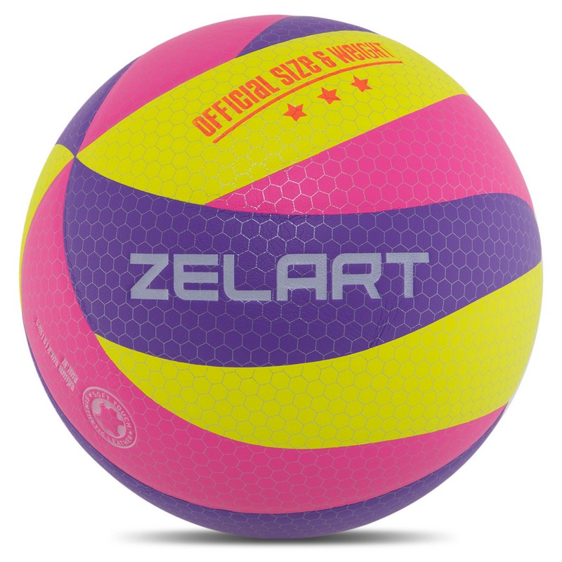 Волейбольний м'яч Zelart (рожево-фіолетовий-жовтий) + подарунок